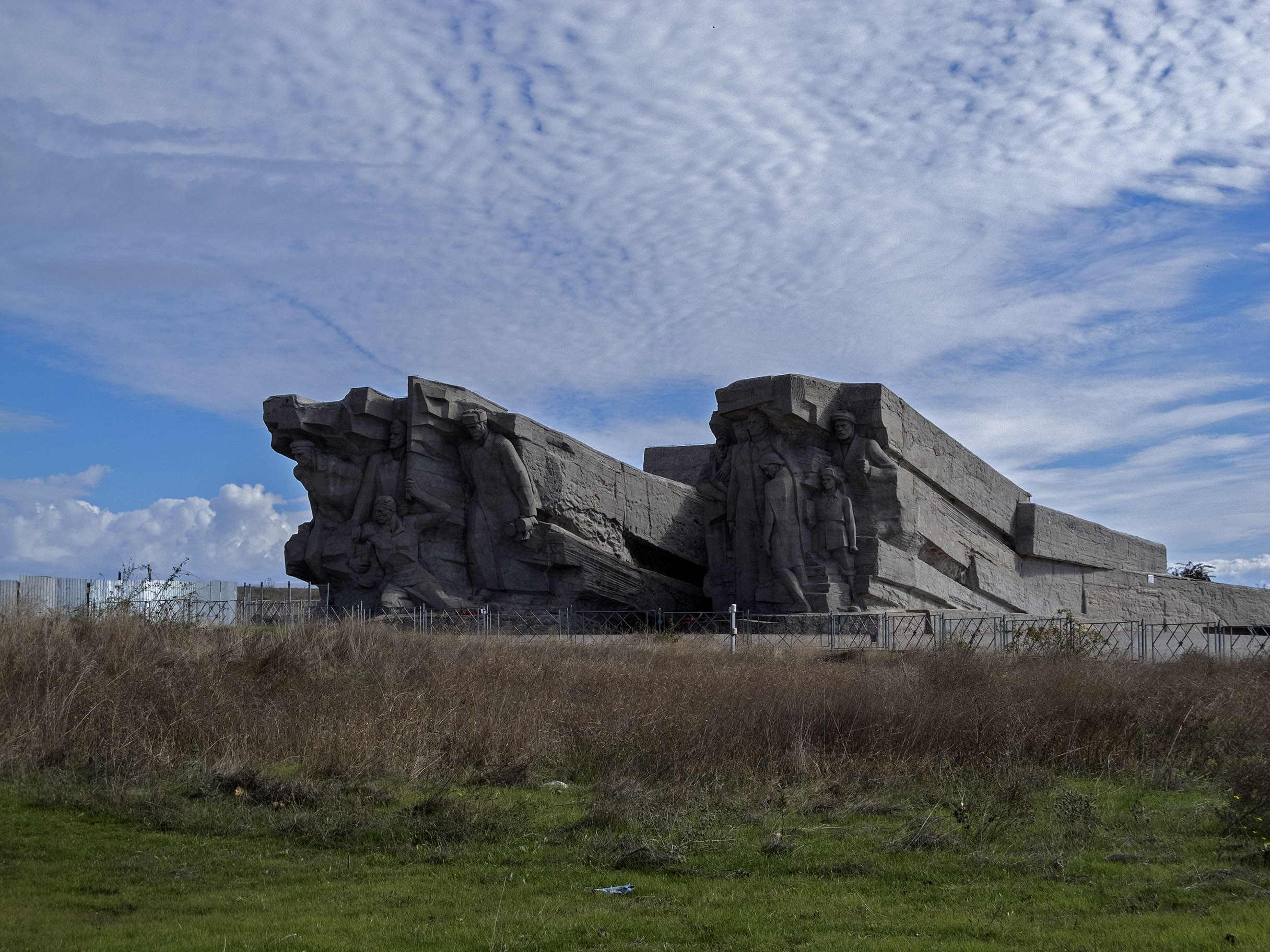 На «пятёрке» доехал до автовокзала и пересел на «четвёрку» - этот автобус довёз меня до Аджимушкайских каменоломен (). Здесь из посетителей был я один, а экскурсии проводят в группе не менее пяти человек. Сел на скамейку в надежде, что хоть кто-то приедет. Здесь мне повезло: минут через пятнадцать подъехали две машины, и кворум был соблюдён.