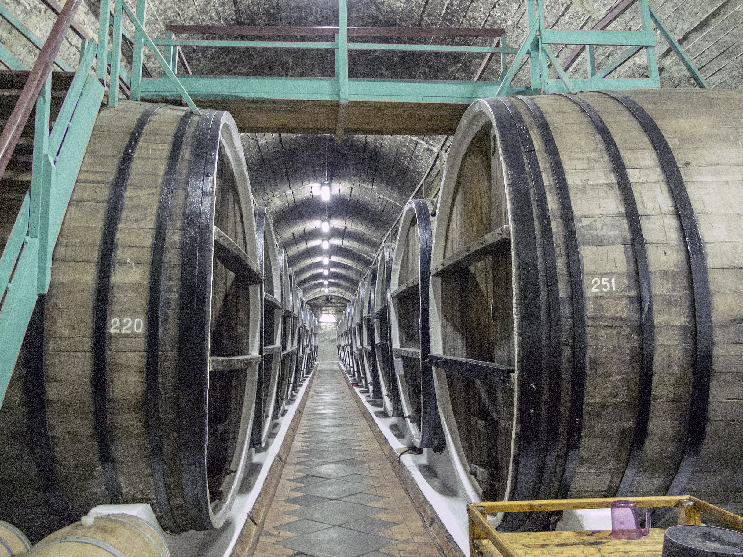 Осенний день и в Крыму короток, поэтому, чтобы не терять время, после распаковки вещей я отправился на прогулку. Дошёл до завода шампанских вин и неожиданно для себя успел на дегустацию! К сожалению, звукозаписывающие устройства включать не разрешили, также было запрещено фотографировать работников завода и собственно экскурсовода, но внутри и вне помещений фото-видео снимать можно ().