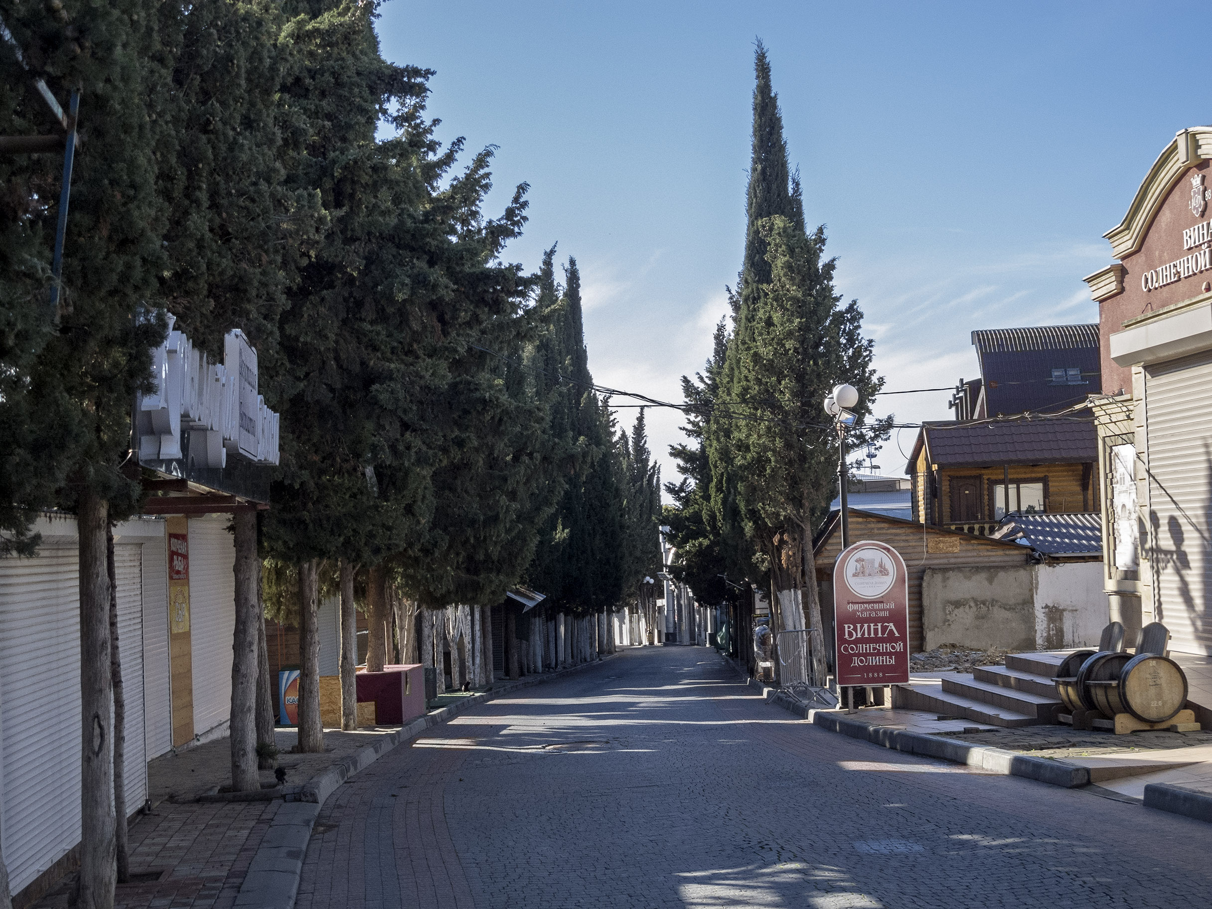 Времени до темноты было достаточно, и я решил прогуляться до фирменного магазина завода марочных вин «Коктебель», в надежде, что там работает дегустационный зал (). И тут меня ждала неудача, поскольку дегустация проводится только на территории винзавода, а здесь только магазин. Девушка-продавец дала мне телефон для записи на экскурсию, и я пошёл обратно. Надо было спланировать завтрашний день, так как я хотел посетить гору Кара-Даг. Этот горный массив является заповедником, экскурсии возможны только в группе, и по предварительной записи. С трудом дозвонившись до организаторов, я понял, что и тут я не попадаю на мероприятие - в межсезонье группы формируются только по выходным, а завтра - пятница... До винзавода тоже не смог дозвониться, и мне ничего не оставалось, как вернуться на базу, предварительно зайдя в магазин «Солнечная Долина», и устроить свою дегустацию...