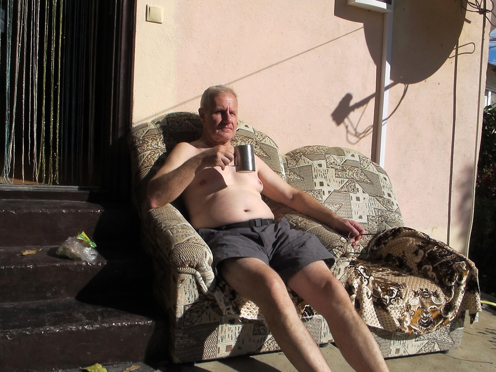 Вернувшись на базу, решил немного отдохнуть и принять солнечные ванны, пока погода это позволяет (). А чтобы было совсем хорошо, налил вчерашнего муската и попивал по глоточку... Правда, блаженство продолжалось недолго: через пару часов на моё кресло упала тень от соседнего дома, пришлось придумывать другое занятие, а именно - пойти пообедать, ведь было уже два часа дня.