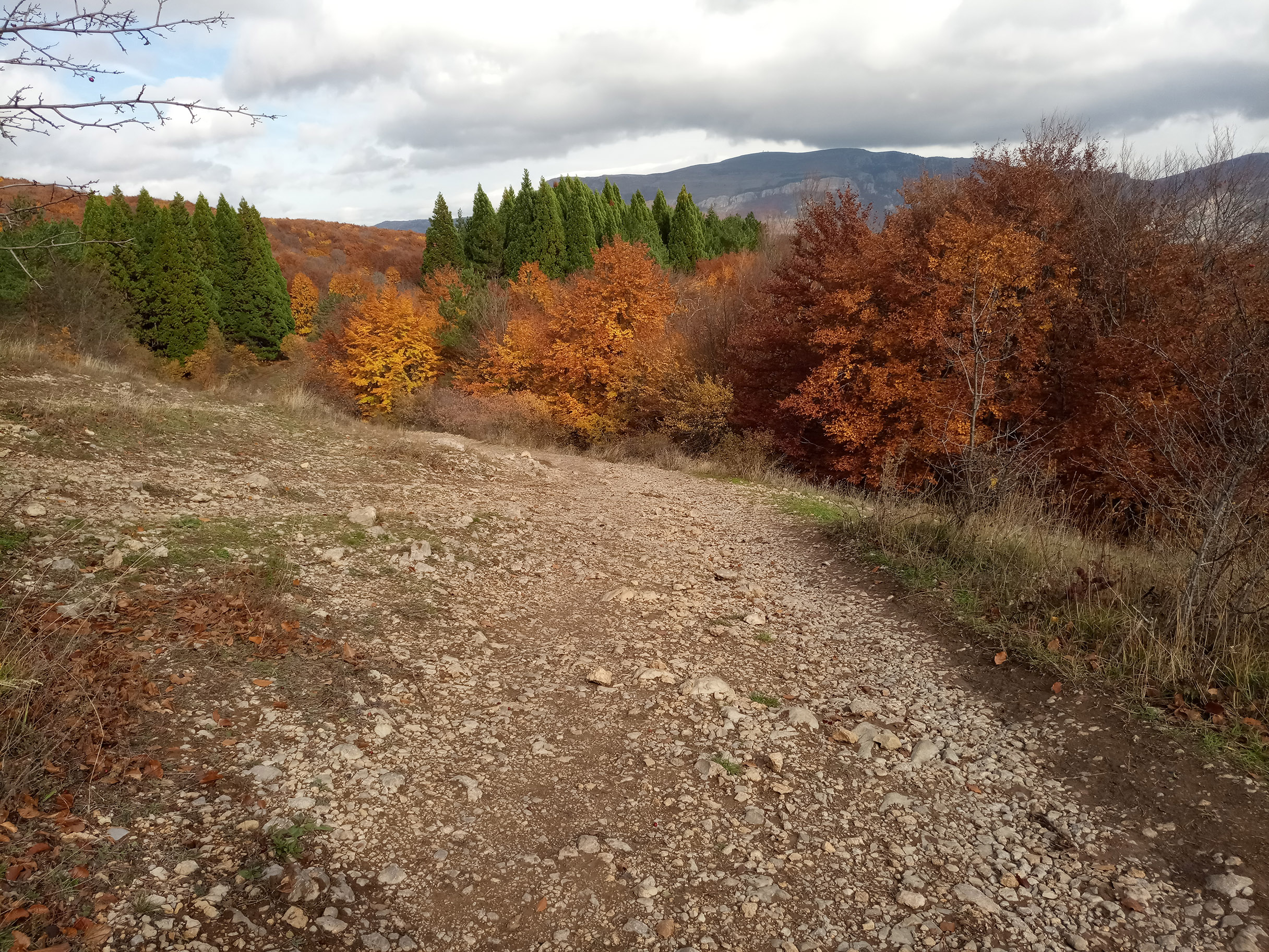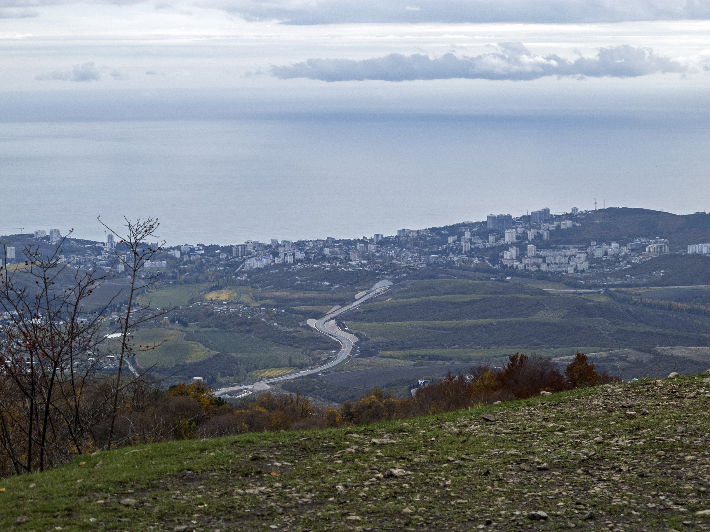 Что ж, почти всё, что хотел, я выполнил... По Алуште оставались ещё две задумки: первая - прогуляться на поляну Саурган (мне не давали покоя лыжи, закопанные в лесу в районе поляны. Попытка найти их в сентябре 2023 года не увенчалась успехом), вторая - посетить Алуштинский стоунхендж, или Кромлех. Поэтому встал пораньше, взял с собой перекус, воду и остатки вина, сел в троллейбус до Ангарского перевала.