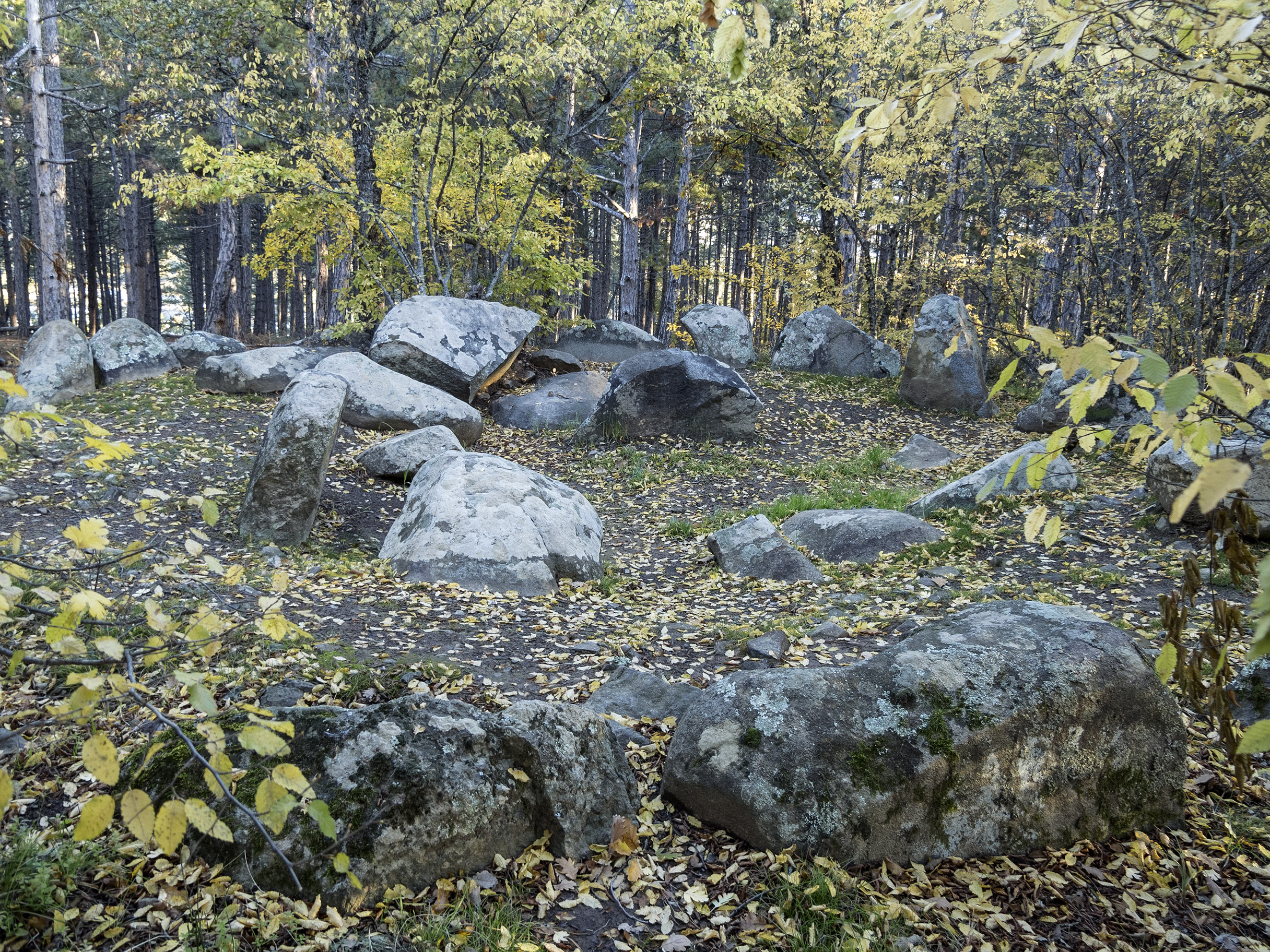 Миновав газораспределительную станцию, я попал в симпатичную сосновую рощу, в глубине которой как раз находился этот мегалитический объект (). Ничего необычного - камни, как камни... Обойдя вокруг, мне ничего не оставалось делать, как возвращаться обратно в город (). Цель похода достигнута.