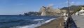 Дойдя по Кипарисовой аллее до набережной, я нашёл свободную скамейку и полчаса побалдел под ярким солнцем, наслаждаясь прекрасными видами гор и моря (), попутно попивая вино из термоса. Надо признаться, меня немного укачало во время езды по серпантину, и сейчас необходимо прийти в норму. От хозяйки из Нового Света пришло сообщение - она интересовалась, когда я приеду. Пообещав, что я позвоню, как только отправлюсь из Судака, я, собрав волю в кулак (так не хотелось никуда двигаться!), пошёл в направлении Судакской крепости.