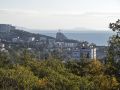Конечно, виды с горы восхитительные, куда ни глянь () - но время бежит неумолимо, а мне наде ещё добраться до Нового Света. Поэтому, описав круг вдоль стен средневековой цитадели (), я вышел за пределы сооружения и пошёл на остановку автобуса. Долго ждать не пришлось: минут через 10 подъехал пятый номер, и вскоре я очутился на конечной остановке посёлка Новый Свет, где меня ждала Людмила - хозяйка моей новой локации. И тут выяснилась природа её волнения по поводу моего приезда: по каким-то причинам номер, который я забронировал, сейчас был недоступен, и она предложила мне другой. Меня новый вариант вполне устроил, так как в моём распоряжении был просторный номер с кухней, санузлом и спальней, а также небольшой участок с беседкой и мангалом.