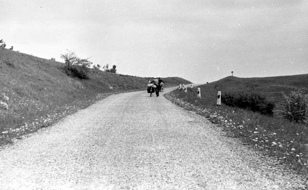 В 11:00 миновали Бахчисарай и начали подъём в сторону Николаевки. Дорога была преотвратная. Часть дороги была засыпана неприкатанным гравием, часть - залита свежим битумом, который на жаре расплавился до сметанообразного состояния; тем не менее, в 16:00 мы прибыли в Николаевку. Проехав на север километра три, остановились на ночлег на берегу моря. Настроение у всех было подавленное (окончательно доконала жара и плохая дорога), и, хотя по плану следующим пунктом у нас должна быть Евпатория, я предложил сократить маршрут и ехать завтра сразу в Симферополь. Предложение было с радостью принято. |