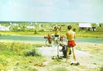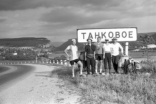 Утром нас заметил охранник, и мы сразу же после завтрака быстро покинули недостроенный пансионат. После сфотографировались у памятника - пушки времён Отечественной войны и начали движение в сторону Вилино по нитке 1986г., только в обратном направлении. До Вилино и далее до Отрадного простиралась унылая степь, иногда пересекаемая оврагами. После Отрадного повернули направо, и пошёл ступенчатый подъём. Где-то на полпути между Отрадным и Бахчисараем водопроводный кран, здесь мы пополнили запасы воды.