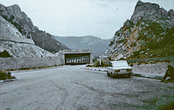Рано утром был дождь, в 6 часов Демидов и Жигалов начали разжигать костёр, остальные встали, как обычно в 7 часов, потом позавтракали, я побрился и начал собирать вещи в дорогу. Но сборы затянулись, а Кузнецов начал трясти находившееся на поляне дерево грецкого ореха. Пока орехи собирали, время пришло к полудню, и мы поехали. За предыдущие дни мне пришлось изрядно попотеть, у меня была солидная усталость. Подниматься вверх пришлось тяжело, я изрядно на подъёме вспотел. А после 46 километра шоссе перевал, тут северо-западный ветер подхватил меня, и я на одном дыхании проехал 4км по яйле и остановился у смотровой площадки скалы Шишко, где сфотографировал вид на обсерваторию (см. фото), на памятник (см. фото), на зубцы (см. фото), на Ялту (см. фото) . Отдохнув минут 20, мы стали спускаться к Ялте. Доктор спускался очень медленно, и я на очередном прямом участке его обогнал. Во время спуска до поворота на водопад Учан-Су (мы там подождали Доктора) я основательно замёрз, хотя наверху холода совсем не чувствовал. А когда мы подъехали к Южнобережному шоссе, мне опять стало жарко. Далее, немного проехав по Южнобережке, повернули на Гаспру, т. к. нам было очень нужно посетить магазины в Кореизе (купить водку и сопутствующее), что мы и сделали. А после по хорошо знакомым улицам въехали в Алупку и остановились на месте прошлогоднего ночлега.