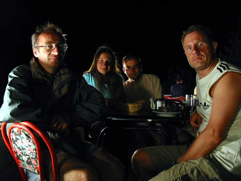 27 сентября: день десятый.Дневка в Алупке. 10 км.С утра мы все вместе пошли к пляжу, но потом начался разброд и шатание: Лена хотела только загорать и купаться, Илье надо было прокатиться куда-нибудь, мне - ремонтировать багажник. Пожелания Игоря были менее выражены, и он просто пошёл купаться. Решив, что сегодня пусть все делают, что хотят, мы с Ильёй, оставив Лену с Игорем на пляже (), пошли обратно, - я провёл его короткой тропой прямо до дома. Мы сели на велосипеды, доехали до автостанции, перекусили в кафе, и он поехал на Ай-Петри. А я поехал по городу искать ремонтную мастерскую. Ничего подходящего не попадалось. Наконец на верхнем рынке нашёл будку ремонта обуви, и ребята согласились мне помочь. Через полчаса я привёз багажник, но их и след простыл. Я прождал 50 минут и уже собрался ехать, как вдруг приехали эти горе-мастера. Посмотрев мою железку, они предложили мне придти за ней завтра. Я был сильно удивлён: неужели, чтобы просверлить две дырки в алюминии, требуется целый день?! Я отказался от их услуг и поехал на верхнюю трассу, где должна быть автомастерская. Но и там меня ждала неудача: у одного не было дрели, у другого дрель была, но не было электричества. Предлагал деньги, упрашивал - бесполезно. Наконец, бродя по гаражам под сопровождением свирепо лающей собаки, я нашёл мужика, который с большой неохотой предоставил мне ручную дрель со сверлом - и не взял ни копейки. Отъехав от злобной собаки на противоположную сторону шоссе, я прикрутил багажник и поехал обратно, так как мы договаривались встретиться и пойти погулять. Ребят пока не было. Но вскоре пришёл Игорь, затем Лена, и последним приехал Илюха. Он, видимо, вдоволь накатался, - это было написано на его лице. После продолжительных сборов мы пошли на вечернюю прогулку. Чтобы не откладывать в долгий ящик, решили сразу же поужинать - благо, кафе находилось рядом с домом. Заказав блюда, мы расположились на открытой площадке и стали ждать заказа (). После ужина ребят потянуло на сладенькое. Нашли магазин с пирожными и тортами и долго выбирали, что же взять - наконец, выбрали; купили ещё две бутылки вина и пошли опять в парк. На этот раз я предусмотрительно взял фонарь и GPS. Илья предложил спуститься к морю и устроить там костёр - он был в своём стиле. Я вывел компанию к восточному краю парка, где мы и спустились на бетонную набережную. Правда, на этот раз дров Илья найти не смог, и я отсоветовал разводить огонь и привлекать внимание. Мы удобно разместились на пластиковых лежаках. После того, как всё было выпито, мы тронулись в обратный путь, но, несмотря на включённые навигаторы, сбились с дороги и вышли на какие-то развалины. Как оказалось, мы слишком высоко взяли, и теперь пришлось спускаться по какой-то козьей тропе, поминутно спотыкаясь о камни и корни деревьев. Вышли опять на улицу лётчика Амет-хана, и уже за полночь вернулись на место ночёвки. Продолжение следует ... День 10 из 13 | Предыдущий | Следующий | Начало |
