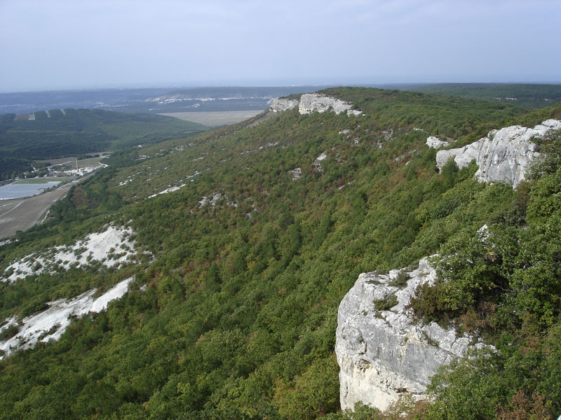 Дорога представляла собой хорошо укатанный известняк, белизна которого слепила глаза. Через полкилометра справа открылся вид на монастырь Челтер. А мы, спустившись в долину, продолжили свой путь в сторону Севастополя. Альтиметр показывал уже 170 метров н.у.м., нам предстояло сбросить это показание до нуля. Уклон дороги позволял, не крутя педали и не тормозя, держать высокую скорость. Уже в час дня мы выехали на асфальтовую дорогу, ведущую в Штурмовое.
