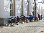 К вокзалу решили добираться разными маршрутами. Со мной через центр города поехал Сергей со своими ребятами и Андрей. Остальные поехали через Рабочий Посёлок. Подъезжая к центру, мы оказались у Панорамы обороны Севастополя. Я предложил ребятам посетить этот музей, а сам в это время расположился на лавочке и попивал пиво с кальмарами. Солнце приятно припекало, и меня даже разморило. Потом пробежался по торговым рядам, чтобы купить сувениров домашним. В это время ребята закончили осмотр, мы выехали из территории музея и поехали в Артбухту. После захода на рынок и в винный магазин мы с Андреем отделились от Сергея и его ребят, которые хотели найти кафе и пообедать. Прокатившись по набережной у Графской пристани, мы пересекли площадь Нахимова и направились к вокзалу. Пришлось ехать по тротуару, так как движение транспорта по улице Ленина сделали односторонним.