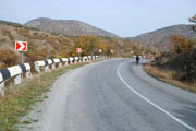 Несмотря на небольшой вес поклажи и хороший асфальт, группа растянулась на несколько километров. Сказывалась накопленная усталость, ведь у нас не было ни одного дня отдыха. Каждый ехал в своём темпе, не было смысла в ожидании друг друга (). Собрались вместе только на подъезде к Судаку. Первым приехал Рома Третьяков, я - вторым, где-то через четверть часа прибыл Рома Кузнецов, за ним Андрей. Пока все собирались, я уже начал замерзать и даже одел куртку. Надо сказать, что погода в Судаке резко отличалась от Морского - здесь было хмуро и ветрено, настоящая осень.