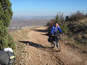 Первым объектом для сегодняшнего осмотра была гора Аскети со знаменитой Бочкой Смерти (). Такое название она получила из устных легенд, что якобы здесь расстреливали красноармейцев и сбрасывали вниз. До неё нам пришлось подниматься по крутому серпантину, где на велосипеде, где пешком (). Обзор был великолепный, только стоять на этой конструкции, подвешенной над пропастью, было страшновато. Кроме Бочки, здесь же имелось ещё несколько полуразвалившихся оборонительных сооружений, соединенных между собой забетонированными рвами. Мы уже посещали это место в 2006 году, только почему-то не дошли до края, поэтому не могли увидеть Бочку и пляж под ней ().