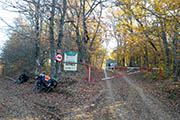 Река Кача была немноговодной, но я не рискнул преодолевать её в седле, чтобы не намочить велотуфли, разулся и перевёл велосипед на другую сторону. Рома последовал моему примеру (). Андрей решил перейти по камушкам, но в конце не удержал велосипед и искупал его вместе с рюкзаком (). Теперь нам предстоял финишный кусок до Кермена, с подъёмом почти на 400 метров по высоте. Поначалу подъём был достаточно крут (), потом уклон дороги немного уменьшился, но, главное, само полотно дороги было ровное. Наверное, здесь поработали бульдозеры. Золотая осень и здесь не собиралась отдавать права матушке-зиме, и всё вокруг было золотисто-жёлтое, отчего становилось как будто теплее ().