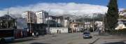 Посетителей в кафе не было, но мои скромные запросы были удовлетворены: лагман, плов и пиво (и, главное, недорого - всего 48 грн). Порции оказались довольно объемными и вкусными (или после сублиматов мне так казалось?), по крайней мере, лагман был настоящим - с лапшой, а не макаронами, и со специями не переборщили. В общем, наелся я досыта. Теперь - в Алупку! Дошел до автостанции, по пути фотографируя необычного вида заснеженные горы. Из-за снега горы казались более высокими и более неприступными, чем летом.
