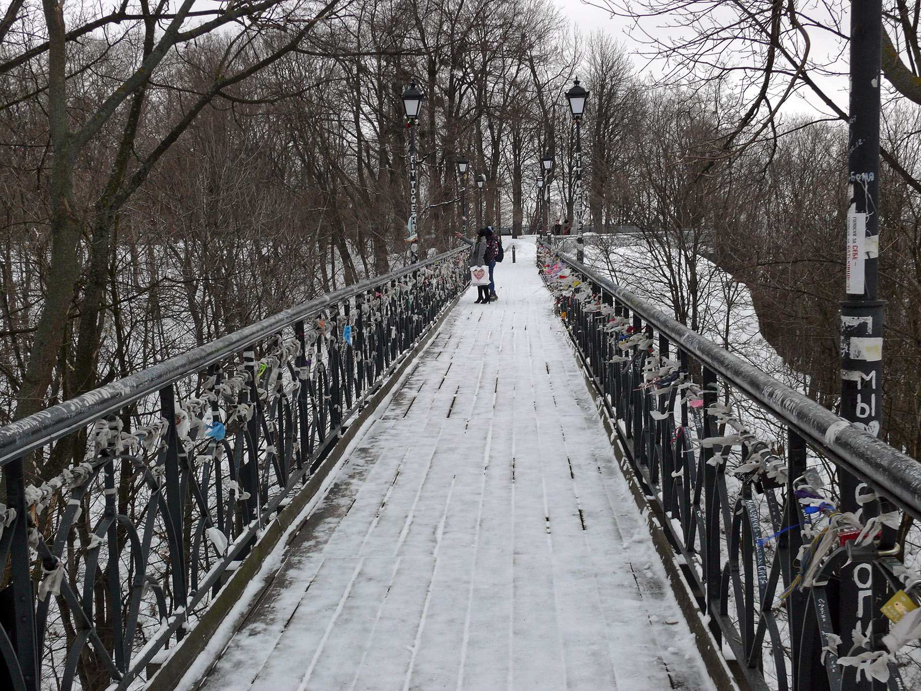 Когда мы вышли из подвала, было уже темно, но город освещался яркими огнями. Далее Рома меня повел по Андреевскому спуску наверх, к Андреевской церкви, потом к Софье Киевской, Золотым Воротам.… (фото 75 - 81) Закончили путешествие мы у вокзала, на секунду заглянув в заведение, где работает Рома Третьяков (фото 82). К сожалению, в этот момент Рома был далеко отсюда - он катался на лыжах в Карпатах. Затем мы вошли в вокзал и сразу направились к Интернет-кассе. Очереди там не было, я протянул бумажку с шифром кассирше и через минуту (о, чудо!) получил билет. Теперь осталось забрать рюкзак и ждать поезда. До отправления ещё было время, и мы пошли в переход, где работали небольшие кафе-забегаловки - выпить на посошок…