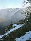 Палатки пока решили не ставить, подождать, пока граждане отдыхающие не съедут. Виктор решил сходить за водой в пещеру (тропа к Данильче начиналась почти от поляны), а я тем временем начал готовить обед. Нам повезло: уже в четыре часа шумные соседи попрыгали в машины и укатили. Ветер немного усилился и начал разгонять туман (фото 106), постепенно обнажая окрестности (чтобы мы, наверное, сразу не обалдели от потрясающих видов). Вначале робко показалась вершина горы Бойка (фото 107), в разрывах облаков начало мелькать село Соколиное (фото 108, 109); но ветер был неумолим: он всё дальше и дальше гнал облака, и они безропотно подчинялись его напору. В конце концов ветер победил: горизонт расчистился, выглянуло солнце, и мы увидели во всей красе и Бойко, и Большой Каньон, и село, и предгорья, поросшие лесом (фото 110, 111). Армия облаков была побеждена, и только жалкие обрывки прижались к скалам и прятались по ущельям. Гора Седам-Кая обнажила свой могучий обрывистый склон, а на горе Бедене-Кыр можно было увидеть “шары” (фото 112).