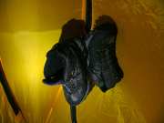Легли, когда уже было совсем темно. Костёр прогорал, а искать ночью ветки на крутых склонах не очень-то хотелось. Я залез в палатку и зажёг последнюю свечку, а чтобы тепло зря не пропадало, пытался подсушить над “домиком” свои ботинки. Держать их на весу было утомительно, поэтому я приспособил петлю от внутренней палатки, привязав к ней ботинки (фото 121). От ботинок валил пар, но висели они очень долго без видимых результатов. Дождавшись, когда свечка прогорит, я оставил ботинки в висящем положении и заснул.