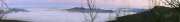 Проснулся я ещё до рассвета, кажется, опять в семь часов. До восхода было ещё далеко, но уже можно было разглядеть, что все низовья были затянуты облаками (фото 122). И только самые верхушки гор торчали из молочной пелены (фото 123), как призрачные острова. Когда немного посветлело, я попытался заснять такую нереальную красоту, но сделать это было непросто - для фотоаппарата было недостаточно света. Только когда солнце подзолотило небосвод, удалось снять приемлемые панорамы (фото 124, 125).