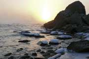 Инджебель вновь порадовало пельменями и пивом. Но сегодня мы решили ограничить себя в прогулках, зашли только в магазин за хлебом и булочками. Виктор опять улёгся, но просил разбудить его перед закатом, чтобы пойти заснять заход солнца. Я тем временем согрел чаю, чтобы отогреться. Просто не верилось, что завтра уже будет тепло. Но по-любому завтра надо было выдвигаться на маршрут. Прогноз был благоприятный - ветер обещали южный, и температуру, близкую к нулю. Но это завтра. А сегодня, за полчаса до захода, я разбудил Виктора, и мы пошли на пляж.