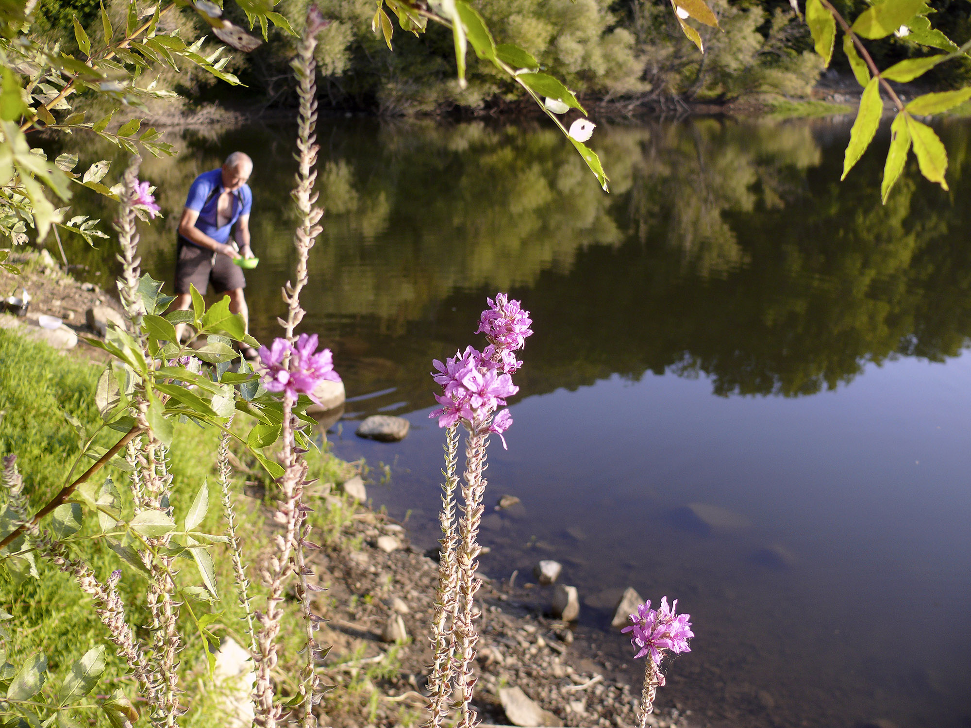 Надо заметить, что Бирюзовое озеро не случайно носит такое название: вода, действительно, бирюзового цвета, насколько это может передать фото-техника (фото 106). Вода прозрачная, видны косяки рыб (фото 107), но почему-то никто не купается. Наверное, из-за того, что дно илистое. А как же помыться? К счастью, в восточной части пруда нашлась труба, из которой с большим напором хлестала вода (фото 108) - вот здесь я и решил помыться, точнее, помыть ноги - уж очень не хотелось ложиться спать с такими пыльными и грязными ногами...