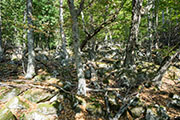 Далее наш путь пролегал по знакомой по нескольким походам грунтовке (фото 96), которая, без больших сбросов и наборов высоты - практически везде мы ехали - привела нас к роднику Талма. Как и ожидалось, источник был мёртв; немного воды было в каменной ванночке, да и в луже под ней вода была лишь на дне (фото 97, 98). А как тут поживают мои лыжи?? Беру GPS и направляюсь в лес. Сейчас здесь идти было труднее, чем зимой, когда земля была покрыта снегом и отсутствовали листья, но я без труда нашёл каменную расселину (фото 99), в которой, присыпанные опавшими листьями, лежали мои лыжи - целёхонькие! Конечно же, я забрал их и вернулся обратно на дорогу.