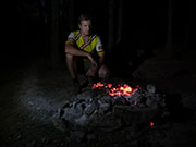 Как свечерело, решили развести костёр. Чисто как антураж, не более того (фото 109). Дров в округе было мало, зато шишек было полно. Заодно можно было сжечь накопившийся мусор - всякие пакетики и бумажки. Отдыхающие постепенно удалились, и мы остались у озера практически одни. В этот раз ни лис, ни ежей замечено не было, и ночь прошла спокойно.