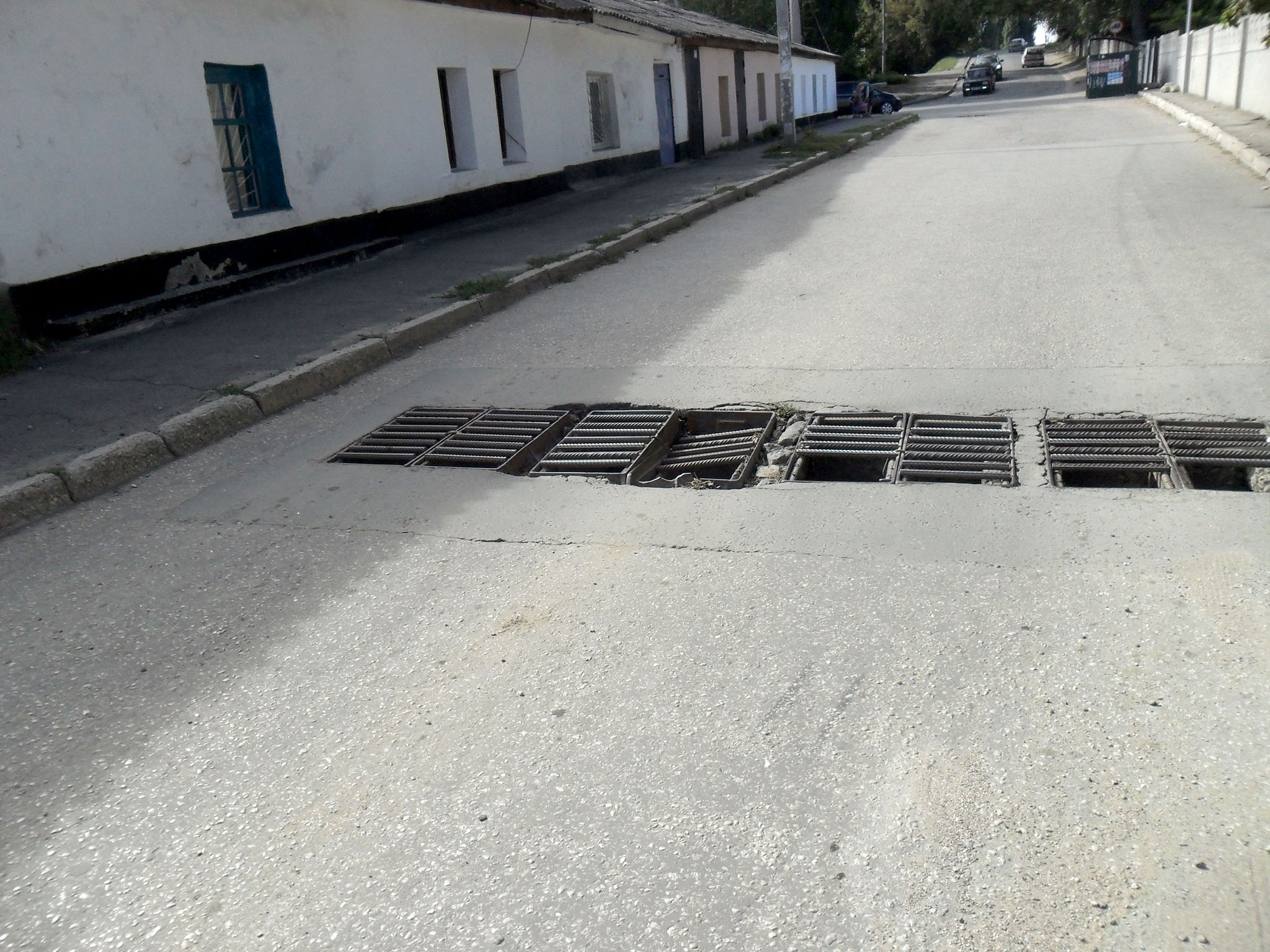 Перед вокзалом на бульваре Ленина заметил несколько киосков с едой и решил немного подкрепиться чебуреком и кофе. Потом чуть вернулся назад, заехал в Вертикаль и купил там один маленький и один большой баллон, чтобы с гарантией хватило на весь поход. Ну вот, теперь можно выбираться из города. Поехал по прошлому маршруту: по ул. Жигалиной, Элеваторной и Героев Сталинграда. Замечу, что улицы Симферополя стали выглядеть значительно лучше, чем несколько лет назад, но всё равно иногда попадались вот такие места (фото 10), так что надо быть внимательным.