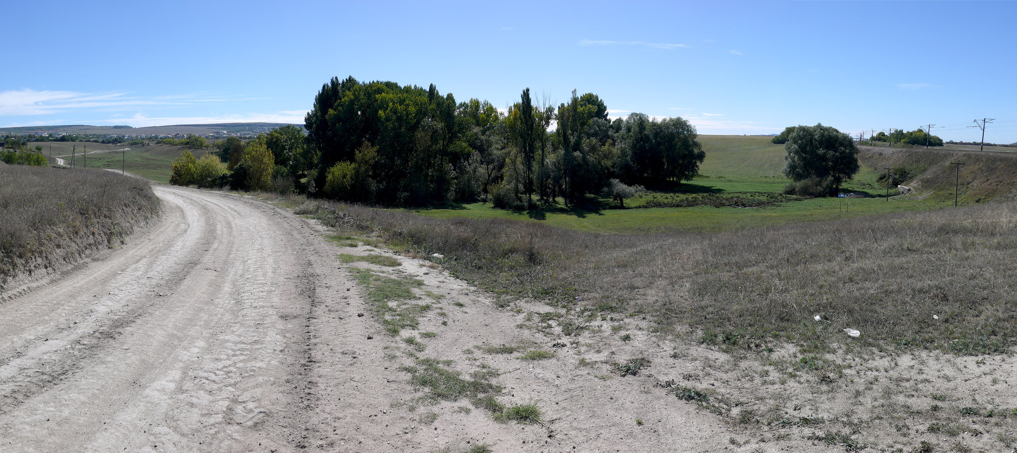 После жд переезда я свернул на просёлок, чтобы найти и проверить ещё один родник - Аджи-Кале, который находился в небольшом лесочке на окраине села (фото 15). Он давал начало ручью - левому притоку реки Зап. Булганак. После непродолжительного поиска таковой родник был найден среди заболоченной низины, но вода мне была не нужна, просто было интересно, насколько точна информация. Кстати, здесь растёт много грецкого ореха, и мне удалось найти несколько штук.