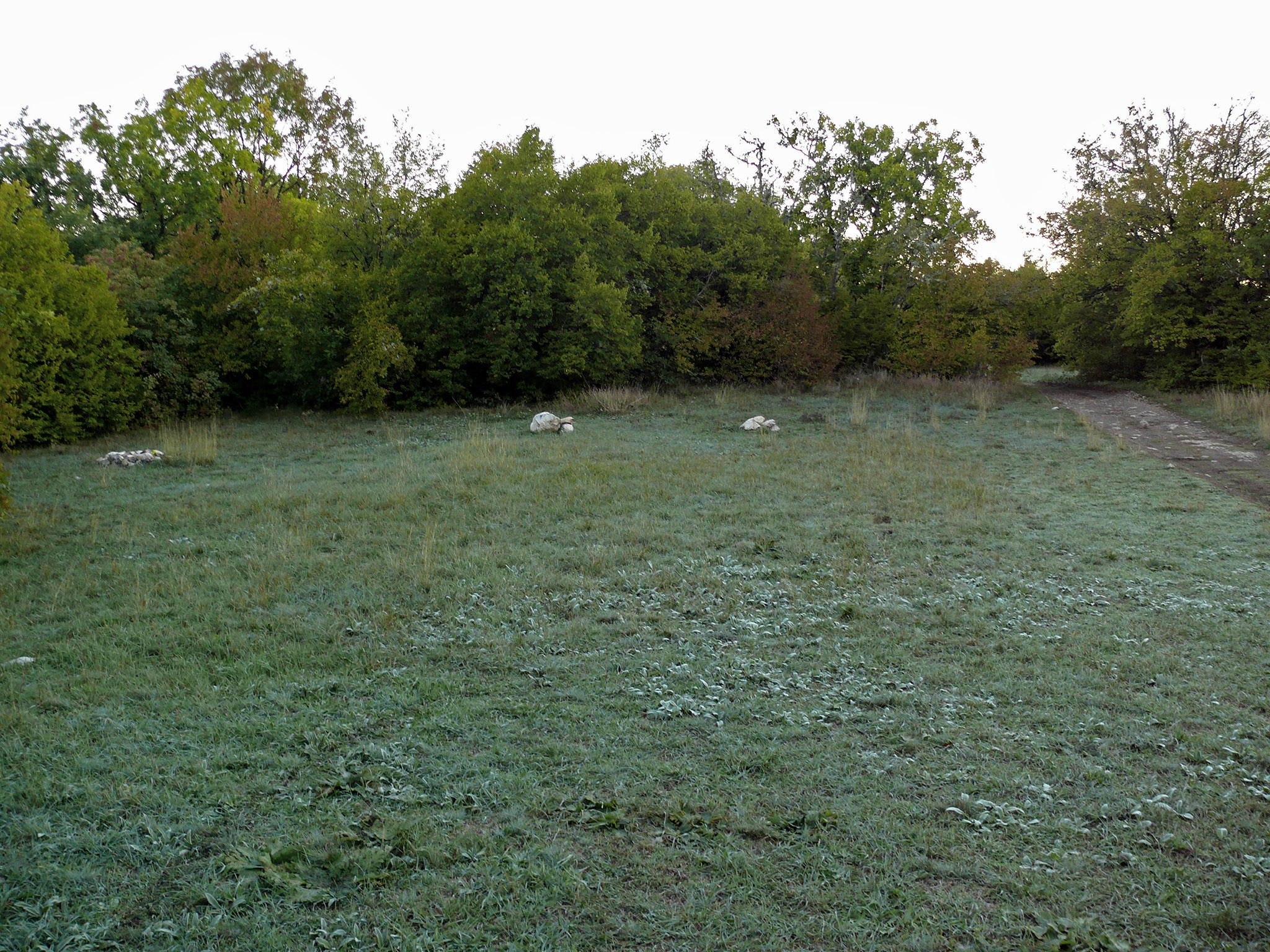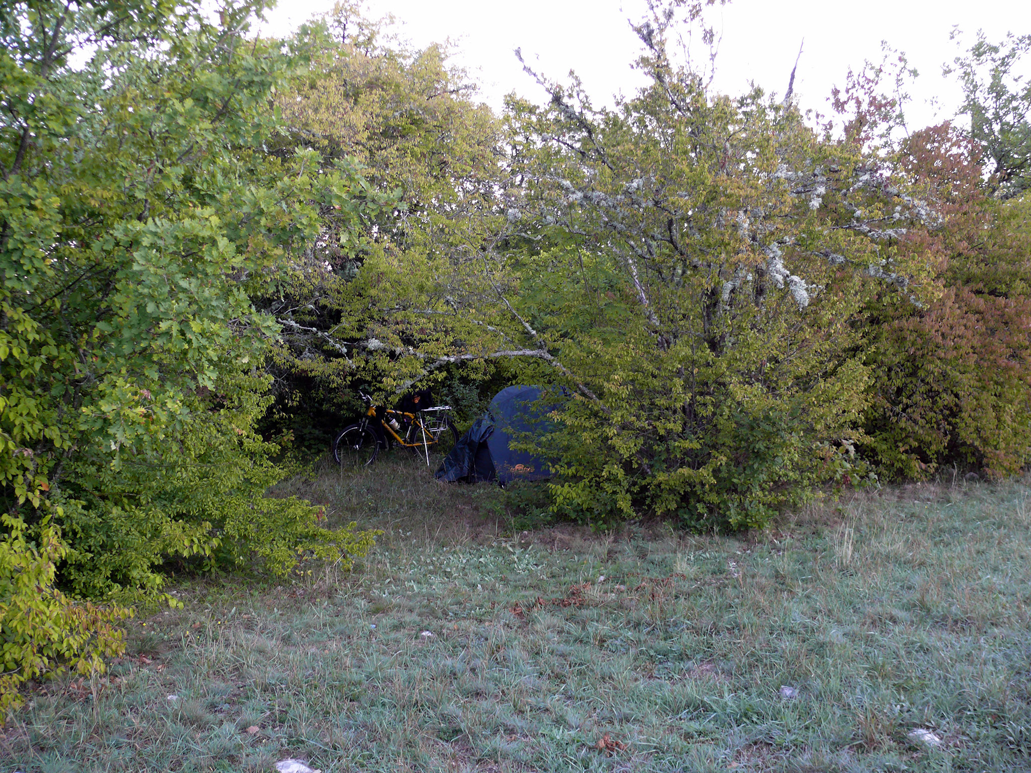 Ужин готовил в тамбуре, так как началось выпадение росы и стало прохладно. Усталость охватила всё тело, хотелось просто лежать и ничего не делать. Перед ужином выпил часть вина, половину бутылки оставил на завтра. Была такая тишина, что было слышно, как падают листья. Благодаря тишине услышал вдалеке человеческие голоса - что это, глюки или кто-то есть? Голоса не приближались и не удалялись; я на всякий случай с помощью бинокля просканировал окрестности - никого не заметил, на этом и успокоился. План на сегодня выполнен, хоть и с небольшим спрямлением пути. Недосып в автобусе давал знать, и, записав в диктофон результаты сегодняшнего пути, стал готовиться ко сну.