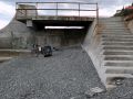 Откуда ни возьмись, налетел шквал и одним махом вырвал все колья, вместе с камнями, и понёс палатку по пляжу... Кое-как поймав её, я не мог сообразить, что делать: надо было уменьшить парусность, для чего я вначале прижал палатку к земле, после чего освободил дуги, иначе их могло поломать. Нет, видно не судьба здесь ставить палатку... Пришлось водружать рюкзак на багажник и, скомкав палатку и покидав обратно в рюкзак то, что успел достать, идти в обратную сторону к волнорезам. Сразу вспомнились наши прежние ночёвки под бетонными крышами волнорезов: это и защита от ветра, и от дождя (фото 128).