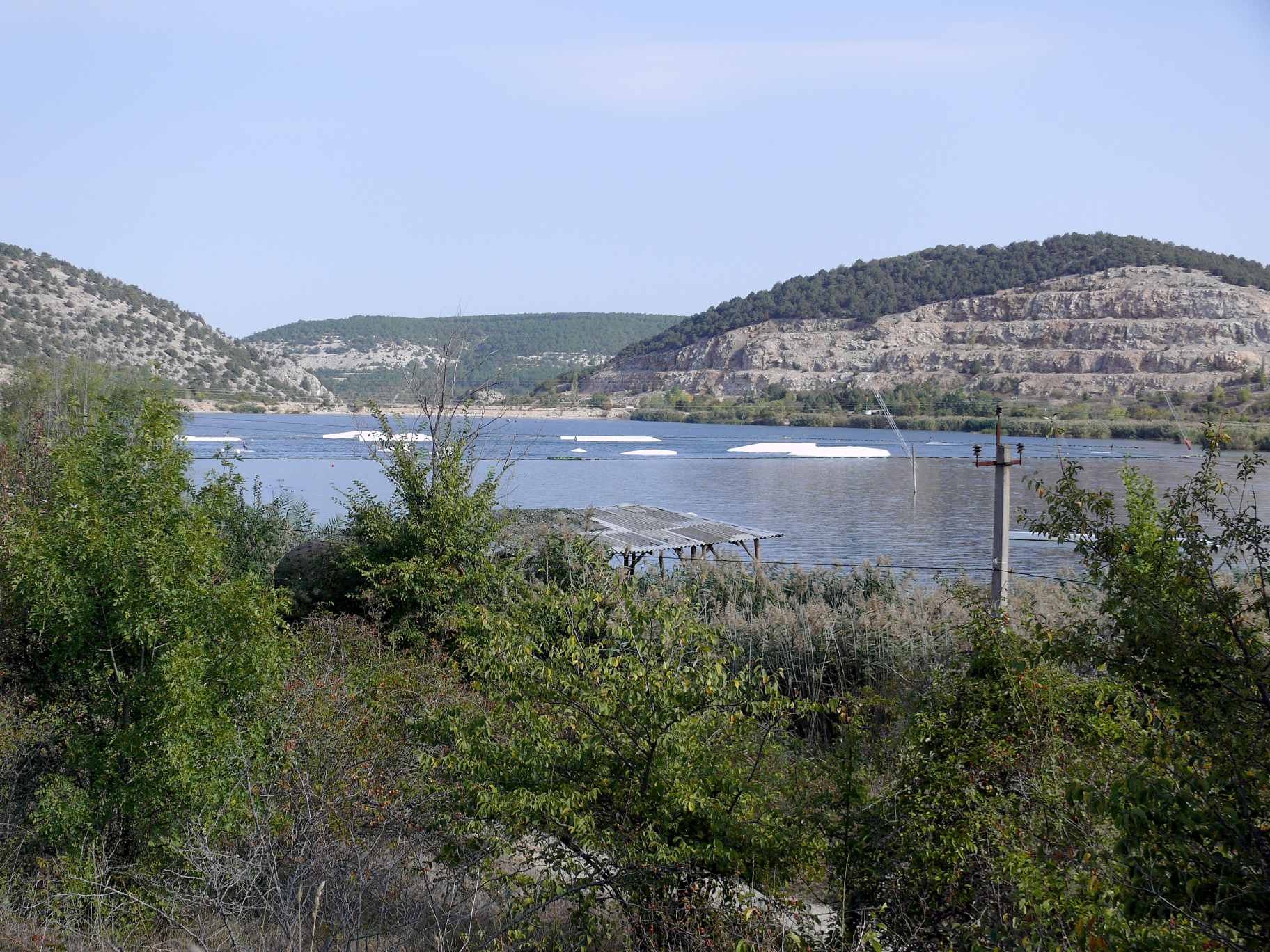 С места выехали, чуть позже обычного – в 8:30 утра. Опять проехали всё село с юга на север (), и в конце повернули налево, на Тыловое. Дорога хорошая, ровная, машин мало (). Да и на Севастопольской трассе не было сплошного потока машин. Доехали до Гасфортовского озера и остановились немного отдохнуть от бешеной скорости на спуске (). Дальше небольшой тягун до развилки на Хмельницкое, где мы свернули с трассы направо (). И опять стремительный спуск и поворот налево.