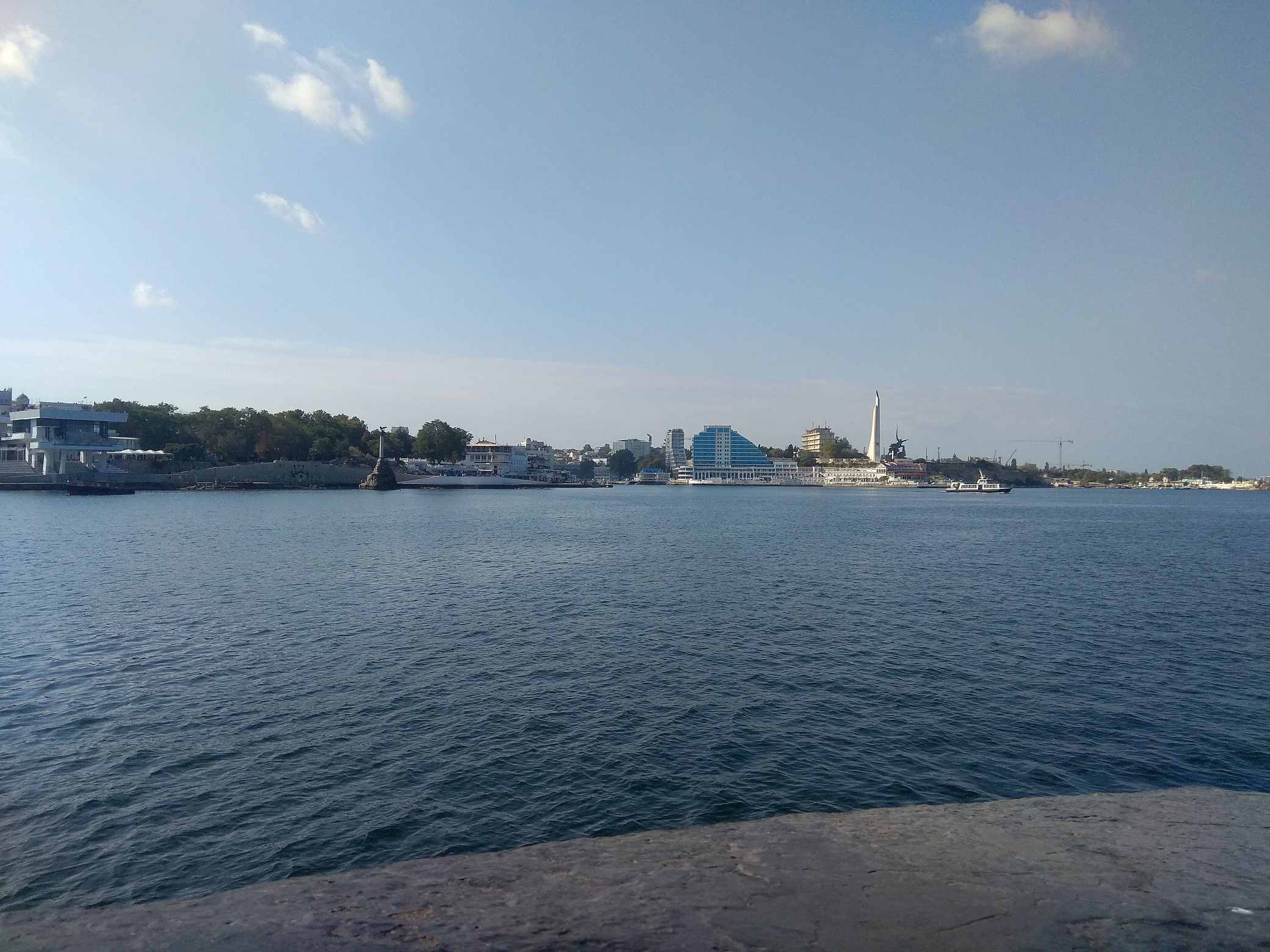 После ремонта и чашечки кофе, купленной в магазине, выехали на шоссе и покатили в Севастополь. Преодолев горку в районе Учкуевки, съехали к пристани на Северной стороне, и удачно успели к отправлению большого парома, шедшего в Артбухту (). Переправа заняла 17 минут.