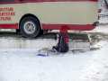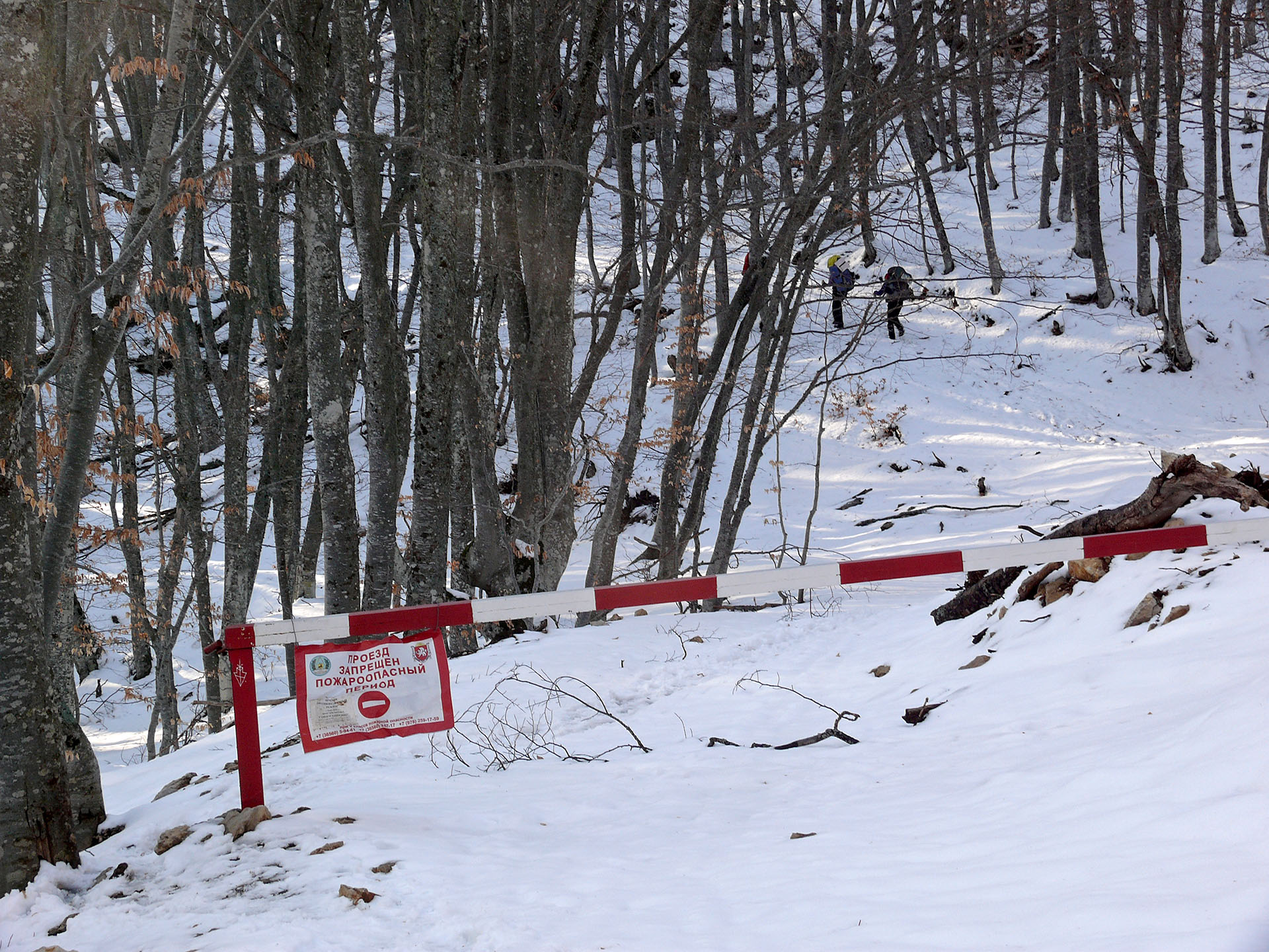 По городу тащились долго: пробки, лужи, ямы на дорогах… До сих пор не могут привести в порядок дороги в Симферополе! Только после Заречного стало свободнее, а шоссе – ровнее и без больших луж. Я и не заметил, как мы, проскочив Перевальное, оказались у поста ГАИ. Заплатив водителю 800 рублей, я подтащился к памятнику троллейбусу и расположился в теньке, чтобы рюкзак раньше времени не насосал влаги (). Ведь, несмотря на то, что мы поднялись на высоту 792 метра, здесь тоже было тепло, а на солнце всё таяло.