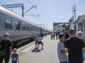 Чтобы не терять зря времени, я пошёл готовиться к выгрузке. В пустом купе это делать проще и комфортнее - я достал рюкзак, поставил его на соседнее место и спокойно уложил вещи в походный порядок. Полтора часа прошли на удивление быстро, поезд прибыл на третью платформу. Я не спешил с выходом, и когда самые торопливые вышли, я тоже выгрузился - сначала вынес велосипед, потом рюкзак. Через 15 минут велосипед был готов к началу путешествия, и я сразу поехал к выходу - через пешеходный настил - на привокзальную площадь ()