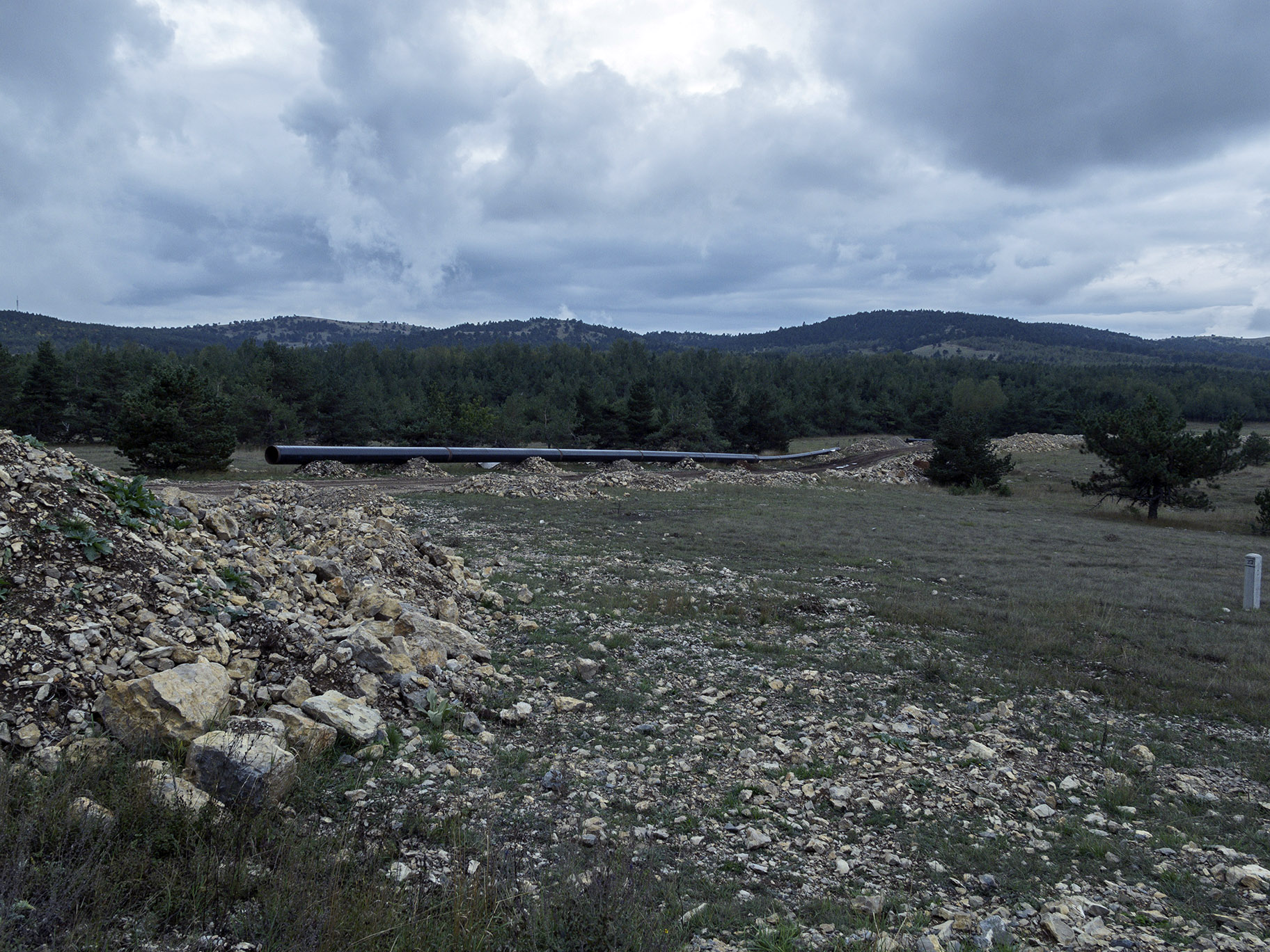 Тогда ещё строилась трасса Таврида, а шоссе на Тургеневку находилось в плачевном состоянии. Сейчас же отличный асфальт, машин практически нет, и жара здесь меньше донимала. Правда, надо было набрать 200 метров подъёма, чтобы доехать до скалы Курбан-Кая (Кубышка), что в дальнейшем сыграло злую шутку.