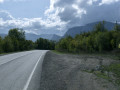 Наконец нам предоставилась возможность ехать по этому шоссе не вверх, а вниз. Громадная лужа, которую мы форсировали вчера под дождём у села Счастливое, почти высохла, что радовало, потому что завтра нам предстояло ехать по грунтам. А сейчас наслаждаемся хорошей погодой, прекрасным асфальтом и красивыми пейзажами ().