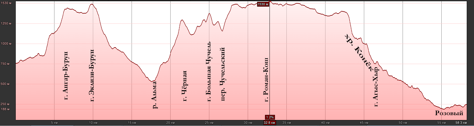 г. Черная - хр. Синап-Даг - г. Берилан-Кош - г. Большая Чучель - г. Малая Чучель - Чучельский пер. |